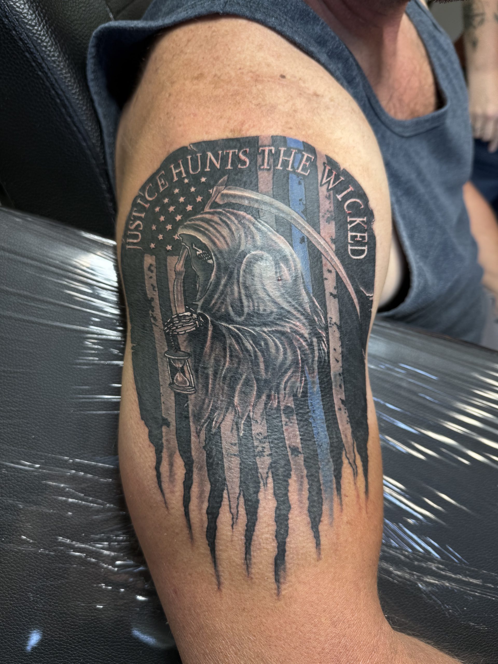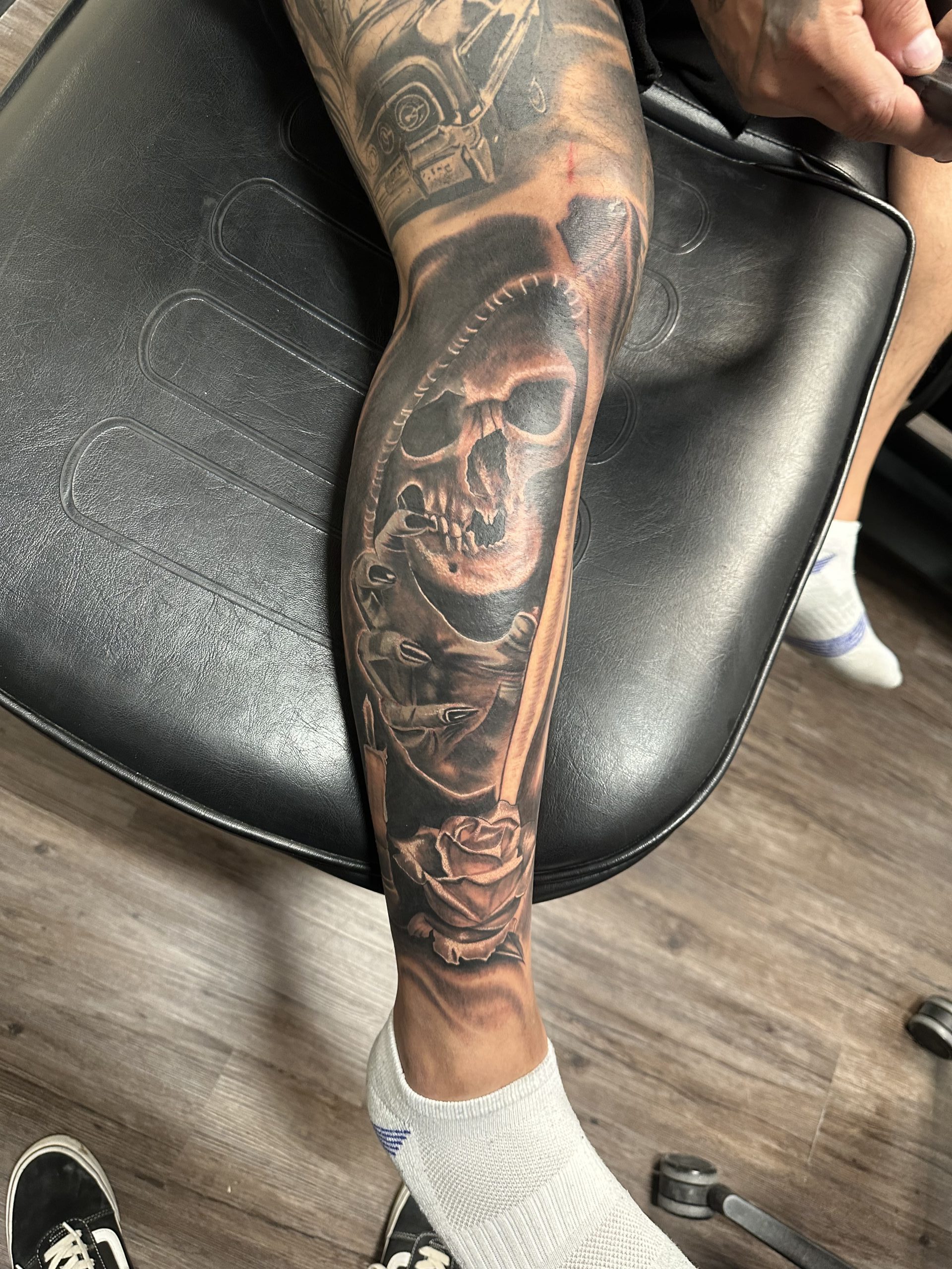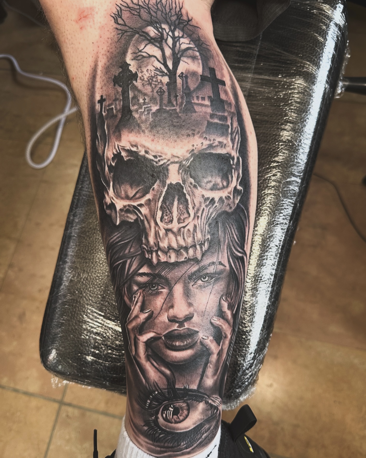What you’ll see here reflects our focus on black and grey realism, portraits, lettering, and custom designs. No filters. No stock art. Just tattoos created with care, collaboration, and precision.